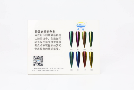 利用薄膜結構色原理,嚴格把控基材和原材料,采用納米級珠光包覆工藝,經由觀察角度的不同。隨著觀察角度的變遷,產生顏色漸變,形成類似肥皂泡般彩虹夢幻,蝴蝶翅膀般多彩靈動,貝殼般一眼七彩,極光般色彩流動色彩效果,那是一種帶給您視覺極致的色彩盛宴和震撼。